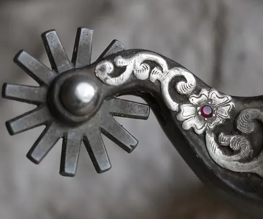 For reining and roping events, the spurs are dulled with free rolling rowels. Spurs are used as a cue for horses to move forward and for the rider’s balance.